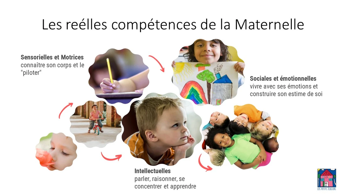 Voici le réel programme de l’école maternelle, l’enfant s’entraîne à l’acquisition des compétences :
