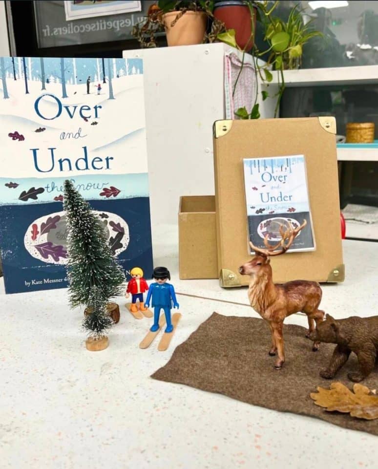 La boîte à mots de l’album s’ouvre, dévoilant ses figurines : animaux qui hibernent, qui
