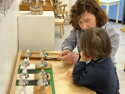 - Avec le matériel sensoriel « des clochettes », l’Enfant affine sa perception sensorielle auditive par des jeux comme :
